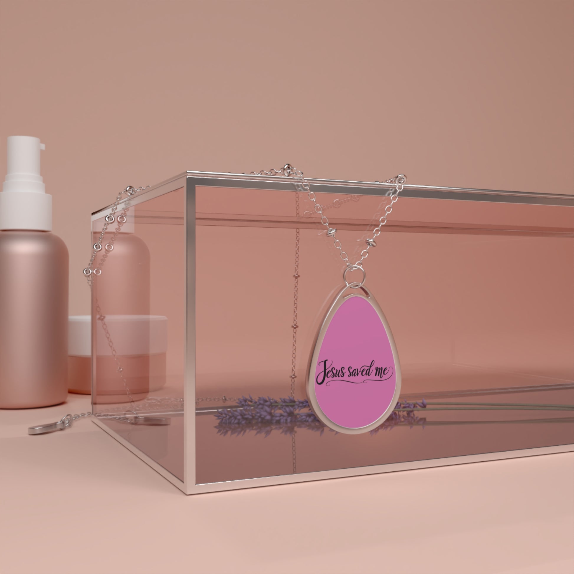 Inspirational Oval Necklace - 'Jesus Saved Me' Pendant